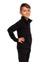 Sport sweatshirt with stand-up collar, zipper, and denim pockets.
