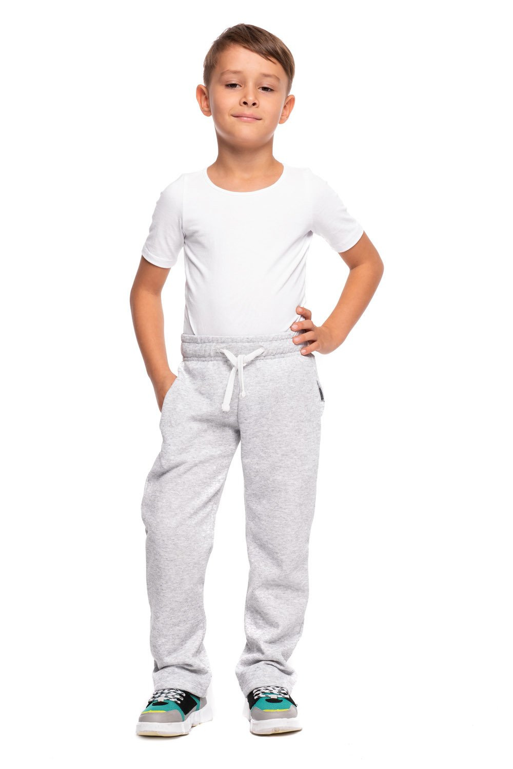 Ilgos tiesios sportinės kelnės melanžinės pilkos spalvos