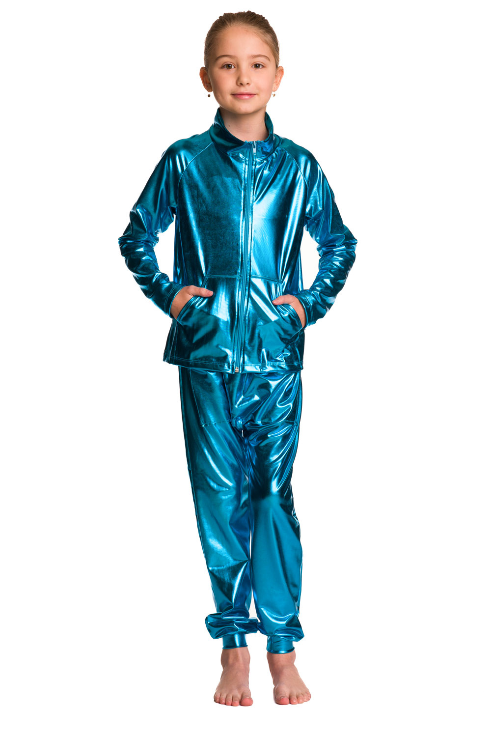 Blizgantys metaliniai megztiniai ilgomis rankovėmis su stačia apykakle, užtrauktuku ir turkio spalvos kišenėmis