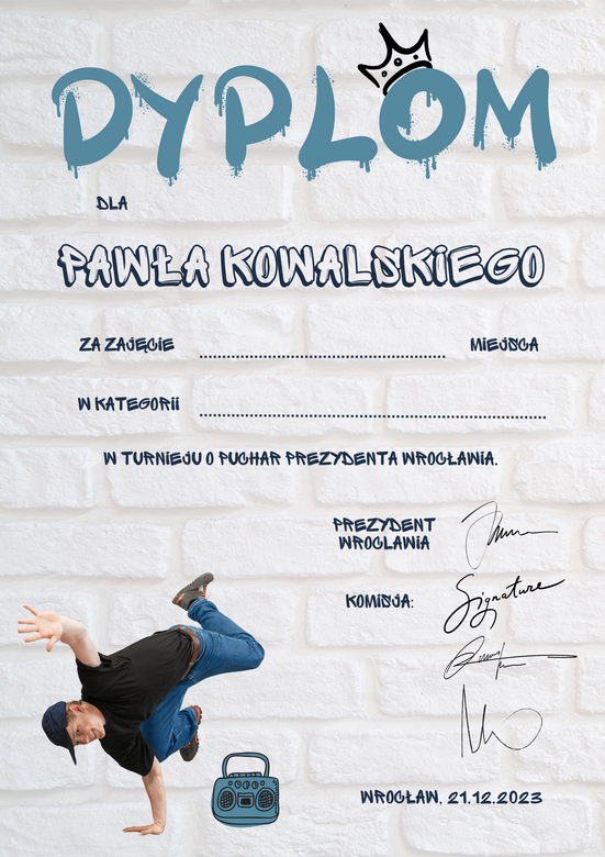 Wpisz test jaki ma się znaleźć na dyplomie: