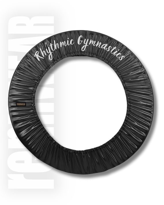 Pokrowiec na obręcz, rozmiar uniwersalny, na wszystkie średnice obręczy. Średnica ustalana poprzez regulację ze stoperami. Aplikacja Rythmic Gymnastics.
