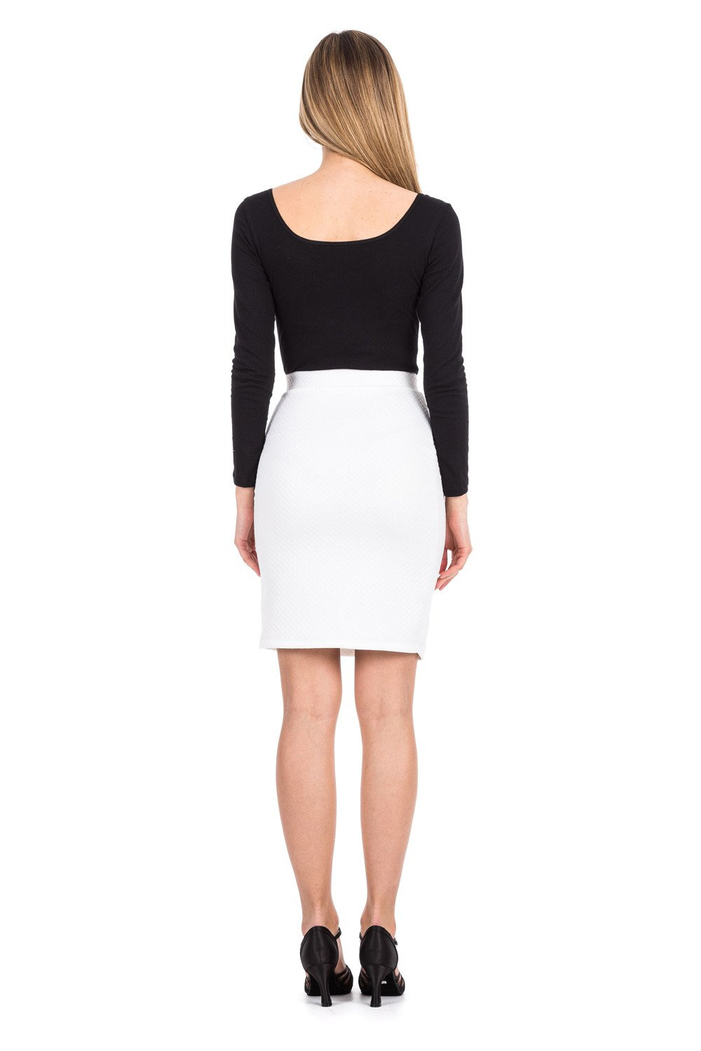 Fusta matlasata PENCIL cu fermoar decorativ alb