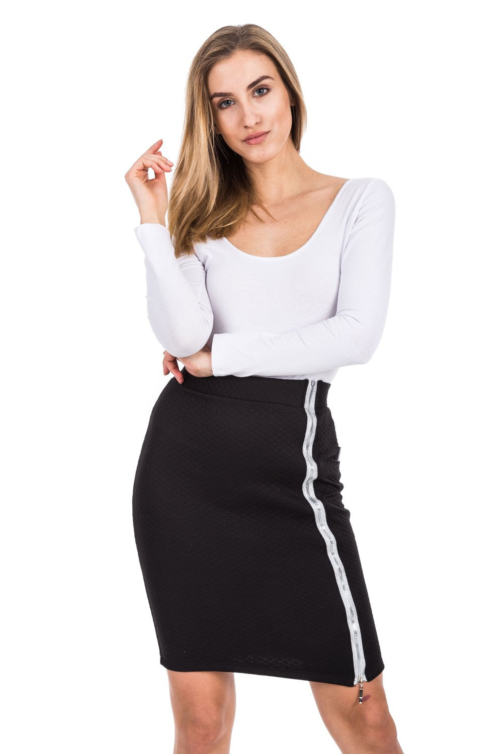 Fusta PENCIL matlasata cu fermoar decorativ negru