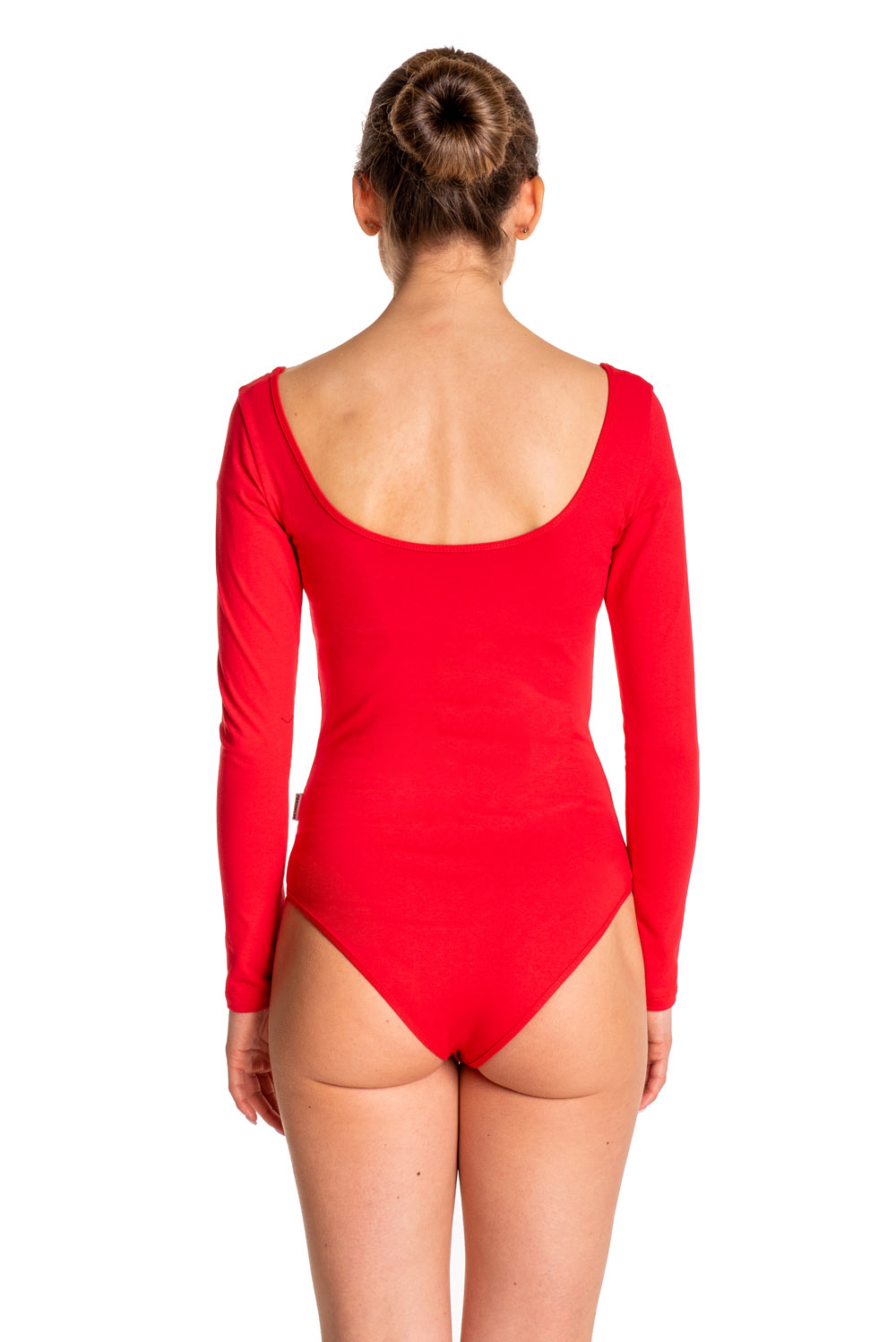 Vacker body med långa ärmar knäppta med krokar i grenen. Bodyn är tillverkad i ett mjukt material, tack vare vilket outfiten passar perfekt till kroppen, vilket snyggt framhäver feminina former. Klädselns botten är fäst med köttfärgade krokar (2 rader med 3 krokar), vilket möjliggör ytterligare justering. Den är idealisk för både eleganta och sportiga stiliseringar.