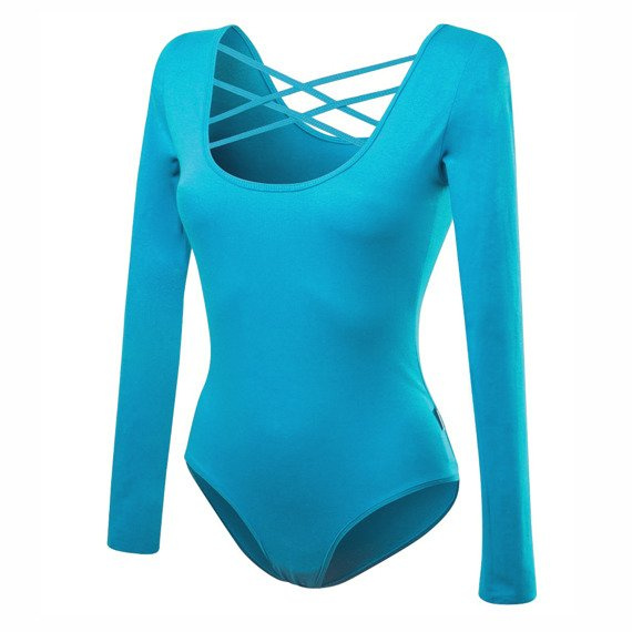 Vacker body med långa ärmar knäppta med krokar i grenen. Bodyn är tillverkad i ett mjukt material, tack vare vilket outfiten passar perfekt till kroppen, vilket snyggt framhäver feminina former. Det är en blandning av 95% bomull + 5% elastan. Klädselns botten är fäst med köttfärgade krokar (2 rader med 3 krokar), vilket möjliggör ytterligare justering. Imitation av snörning i form av korsade ränder på halsen exponerar det perfekt. Den är idealisk för både eleganta och sportiga stiliseringar.