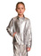 Sudadera metalizada brillante con manga larga, cuello alto, cremallera y bolsillos, atuendo de rendimiento plateado