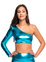 Ženska športna majica za dekleta, kovinski, svetleči, asimetrični, z dolgimi rokavi, s poševnim izrezom za nastop, turkizna